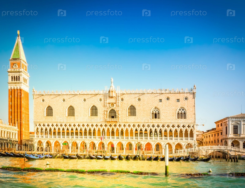 Колокольня Сан-Марко и дворец дожей в летний день, Венеция, Италия