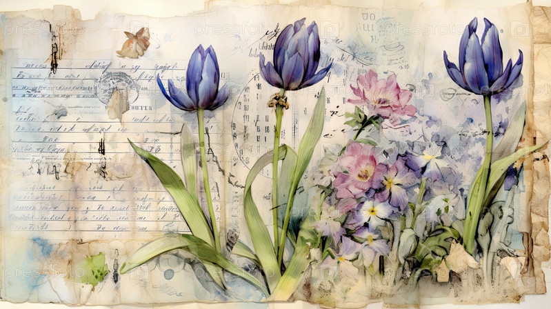 Пасхальный коллаж с винтажными изображениями пасхального кролика в цветах