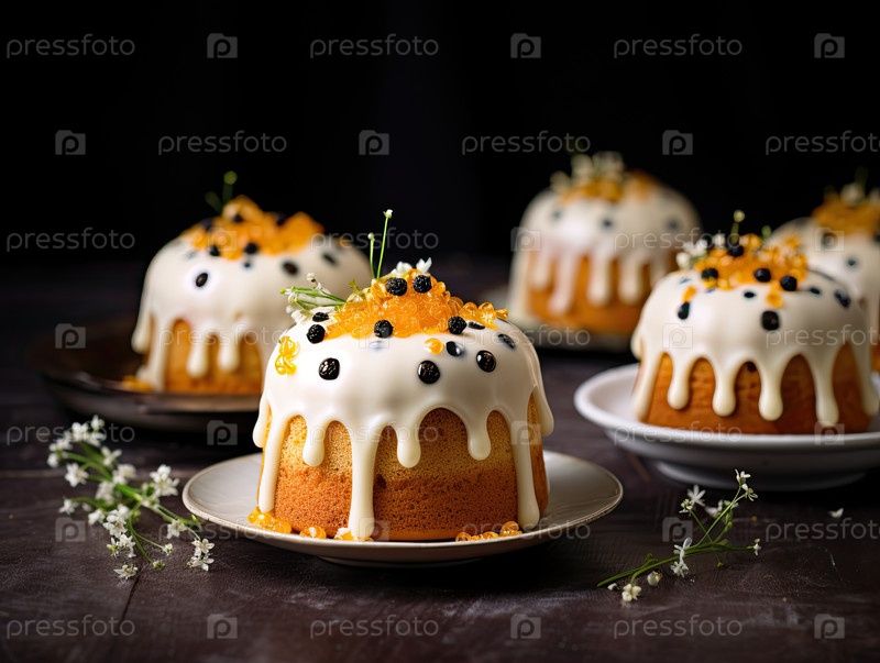 Праздничный пасхальный куличный торт на нейтральном фоне