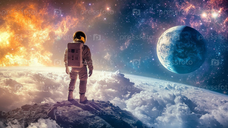 Астронавт, открывающий далекую галактику и обнаруживающий новый мир