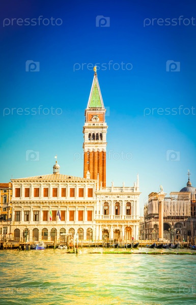 Площадь Сан-Марко на набережной в солнечный день, Венеция, Италия, ретро тон