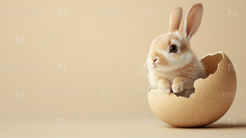 Пасхальный пейзаж, кролики с красочными яйцами и ромашками на лугу под прекрасным небом