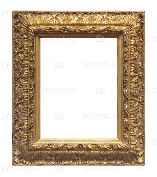 Золотая рама для картин, зеркал или фотографии изолированной на белом фоне