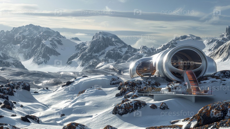 Инновационная среда обитания, предназначенная для заснеженной отдаленной местности с акцентом на будущее исследование и заселение