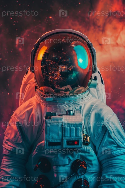 Изображение астронавта - мужчина или женщина в костюме с шлемом, космический газ, созданный искусственным интеллектом