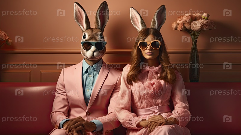 Пасхальный кролик, пара современных зайцев празднуют Пасху
