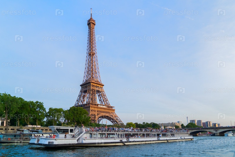 Эйфелева башня и Пон-Диена в синий сумерки, Париж Франция