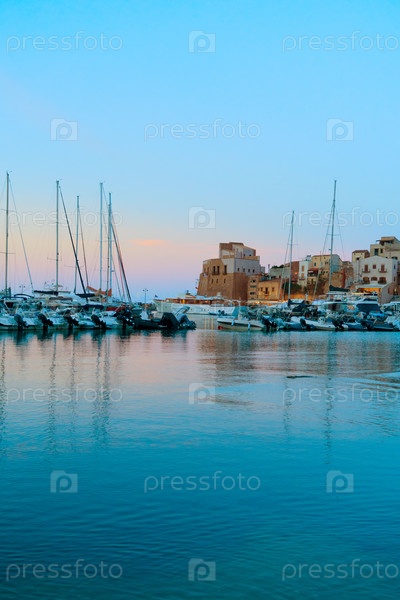 Город Кастелламар-дель-Голфо на закате, Сицилия Италия