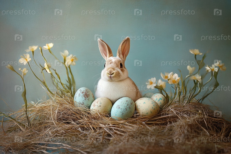 Маленькое желтое птенце, отдыхающее среди цветов и пятнистой раковины. Близкий снимок маленького цыпленка в окружении цветковой среды и атмосферы утренней росы