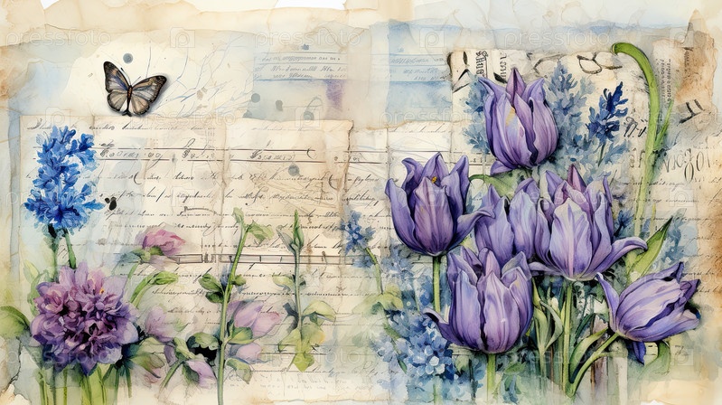 Пасхальный коллаж с винтажными изображениями пасхального кролика в цветах