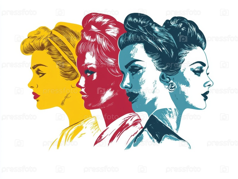 Три женщины в ретро одежде позируют как хор, мотивы звезд и смелые цвета составляют призыв к действию против раковых клеток, подходящий для повышения осведомленности, скрининга