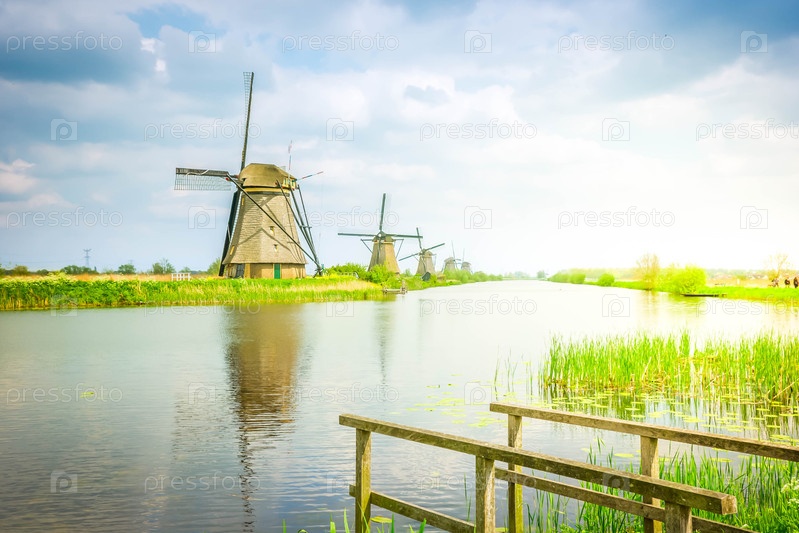 Голландские ветряные мельницы в летний день