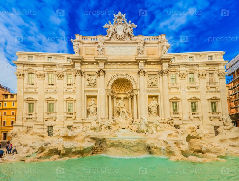 Восстановленный фасад знаменитого фонтана Треви в Риме днем, Италия