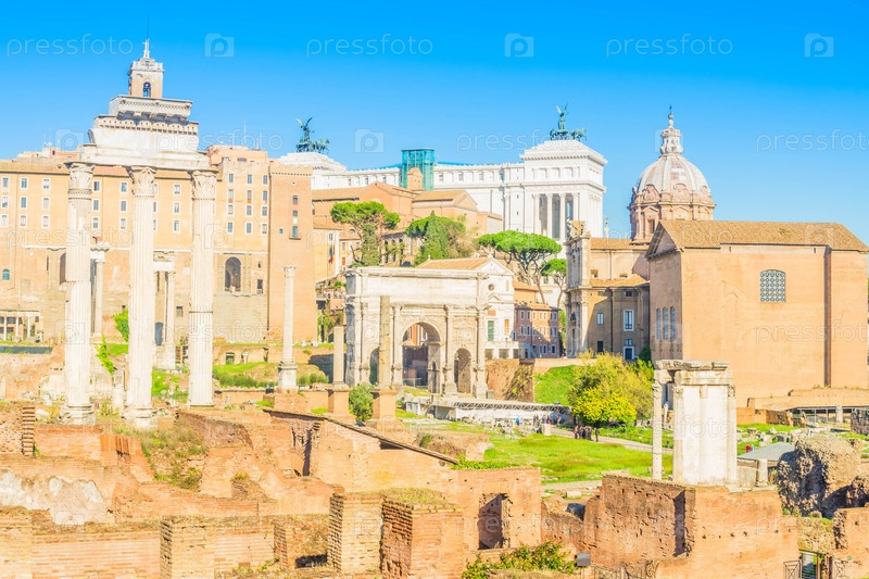 Форум - Знаменитые римские руины и памятник Виктору Эммануилу II в Риме, Италия