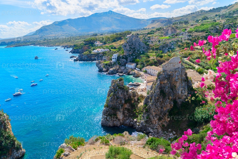 Красивая природа скал Скопелло, остров Сицилия, Италия