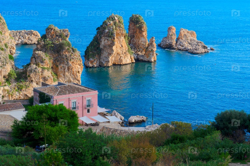 Красивая природа скал Скопелло, остров Сицилия, Италия