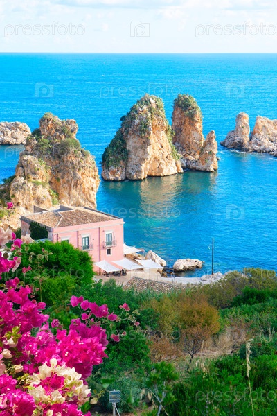 Красивая природа скал Скопелло, остров Сицилия, Италия