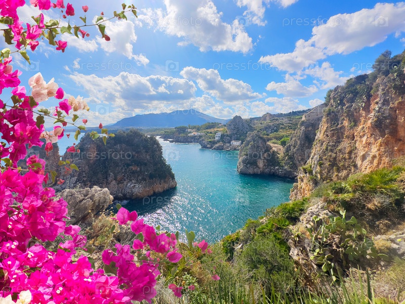 Красивая природа скал Скопелло, остров Сицилия, Италия
