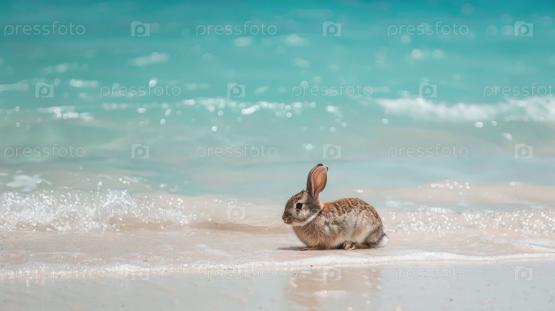 Два милых пасхальных кролика в отпуске на пляжном побережье