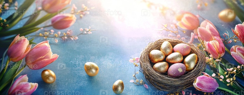 Роскошный цветочный весенний дисплей. Софистицированное весеннее расположение с нежными цветами. Изысканная сезонная декорация, включающая элегантные цветы и тонкие блестящие акценты