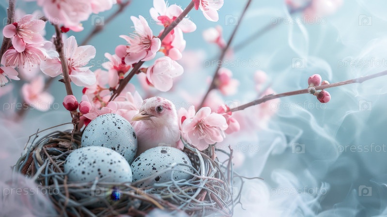 Пасхальная корзина с цветными яйцами