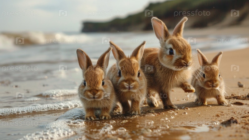 Два милых пасхальных кролика в отпуске на пляжном побережье