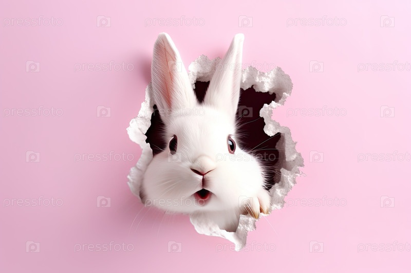 Милый счастливый пушистый белый пасхальный кролик подглядывает