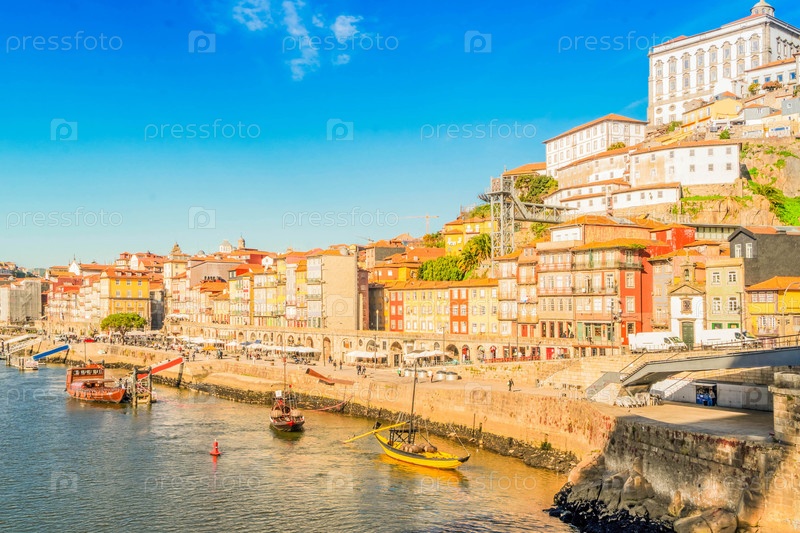 Живописный, красочный вид на старый город Порто с мостом, Португалия с мостом Понте Дом Луис через реку Дуро