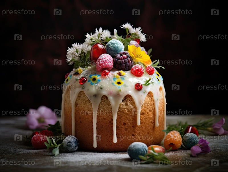 Праздничный пасхальный куличный торт на нейтральном фоне