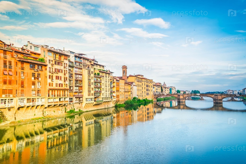 Старый город и река Арно отражаются в воде, Флоренция, Италия