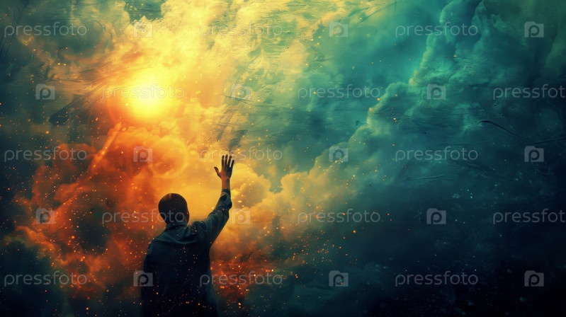 Hands In The Sky, человек поклоняется богу с поднятыми руками
