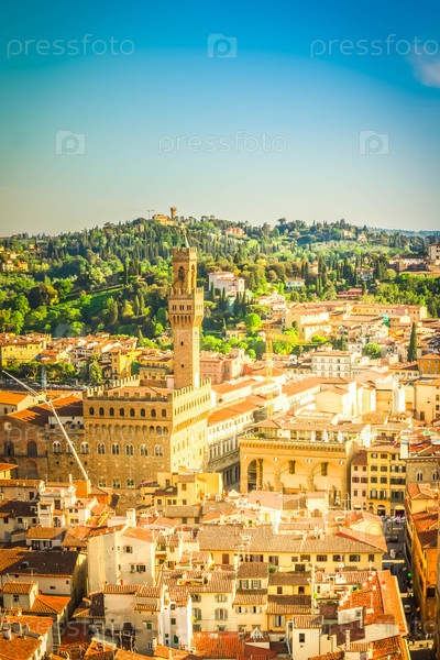 Флоренция городской пейзаж с дворцом Веккио, Тоскана, Италия