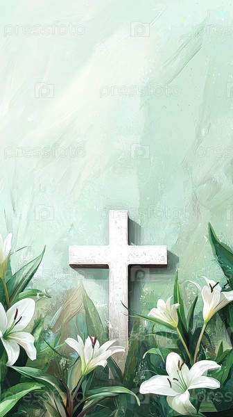 Простой дизайн пасхального креста с лилиями вокруг него