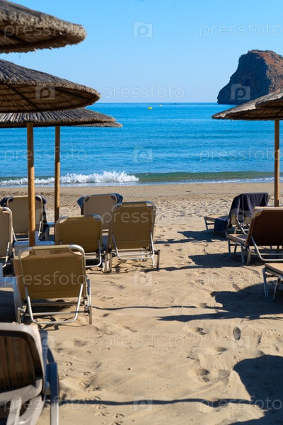 Стул на пляже Агия Марина, Крит Греция, синий оттенок