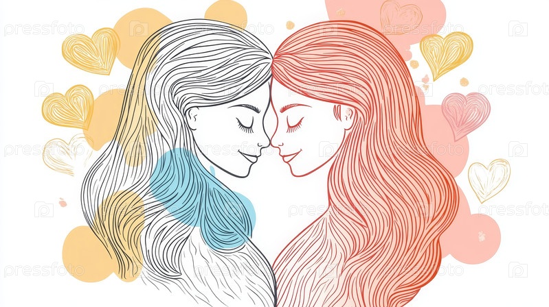 8 марта, Международный женский день.Женщины стоят вместе и поддерживают друг друга в линейном искусстве или стиле oultine