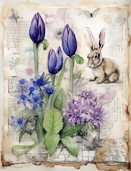 Пасхальный коллаж с винтажными изображениями, основанный на искусственном интеллекте
