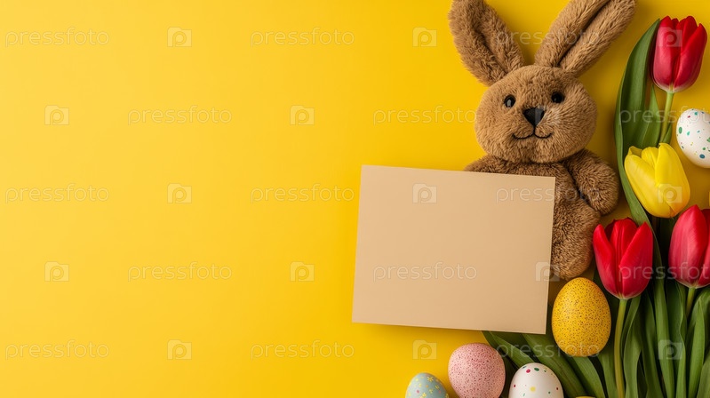 Пасхальный кролик с яйцами, копировальное пространство
