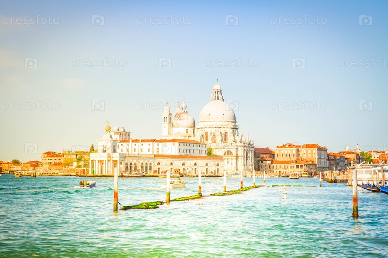 Базилика Санта-Мария делла Салуте над водой Большого канала в солнечный день, Венеция, Италия