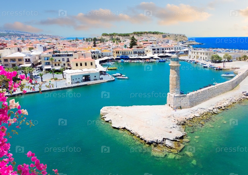 Гавань и маяк старого города Ретимно, Крит, Греция, ретро-тон