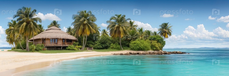 Бангало на берегу моря с голубой крышей, тропический отдых со всем включенным, спокойная частная аренда, семейная вилла, цифровое рисование мультфильмов