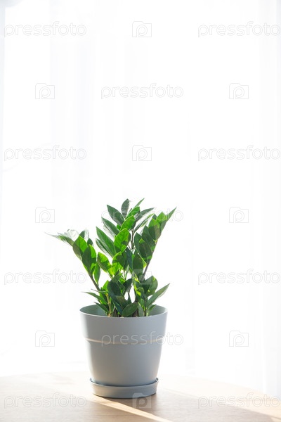 Zamioculcas zamiifolia на фоне окна, стиль минимализм, легкий уход, советы по поливу, домашний декор, свет и воздух, зеленый дизайн растений