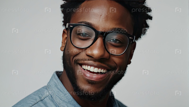 Современный чернокожий студент-мужчина в очках, серый фон, проблемы с компьютерным зрением, цифровое обучение, образовательные тенденции, концепция оздоровления, зона рекламного текста