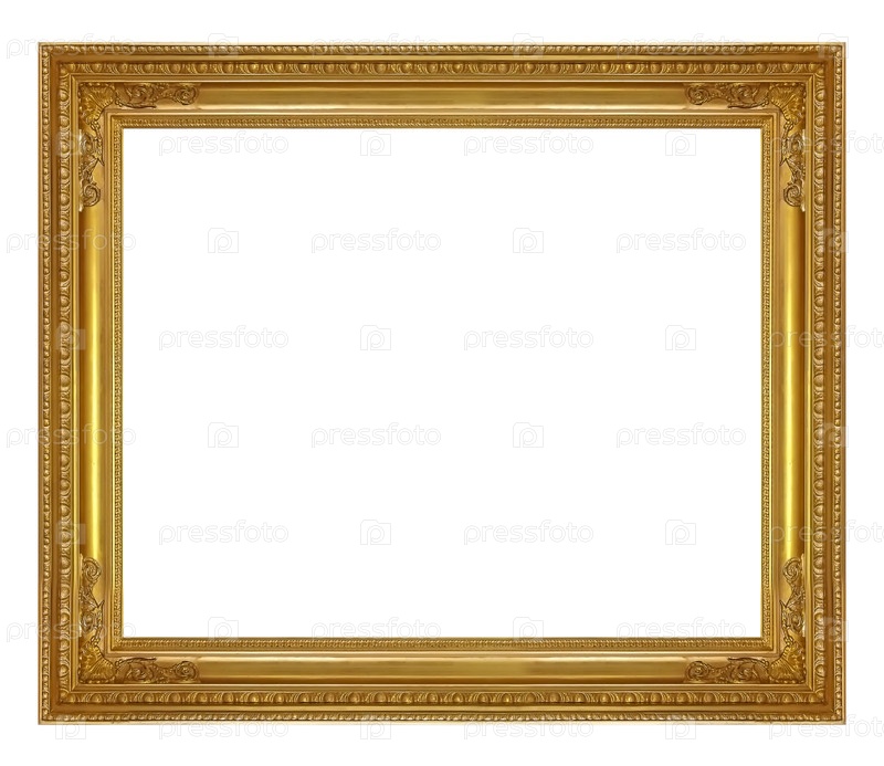 Золотая рама для картин, зеркал или фотографии изолированной на белом фоне, готовый вырез