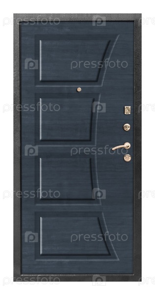Модель входной металлической двери, изолированной на белом фоне с готовым вырезом