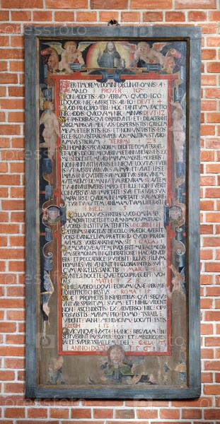 Историческая библейская табличка с надписями в Стокгольмском соборе (Storkyrkan), Стокгольм, Швеция