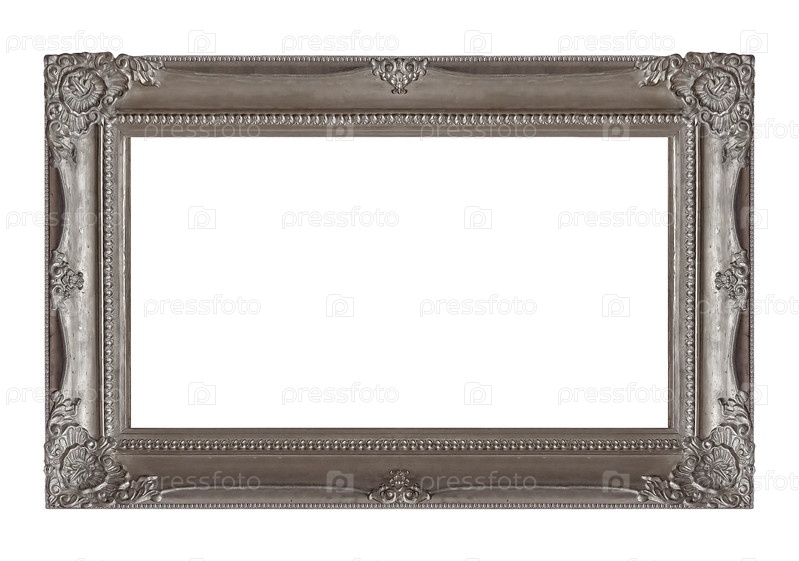 Панорамная серебряная рама для картин, зеркал или изолированной фотографии на белом фоне