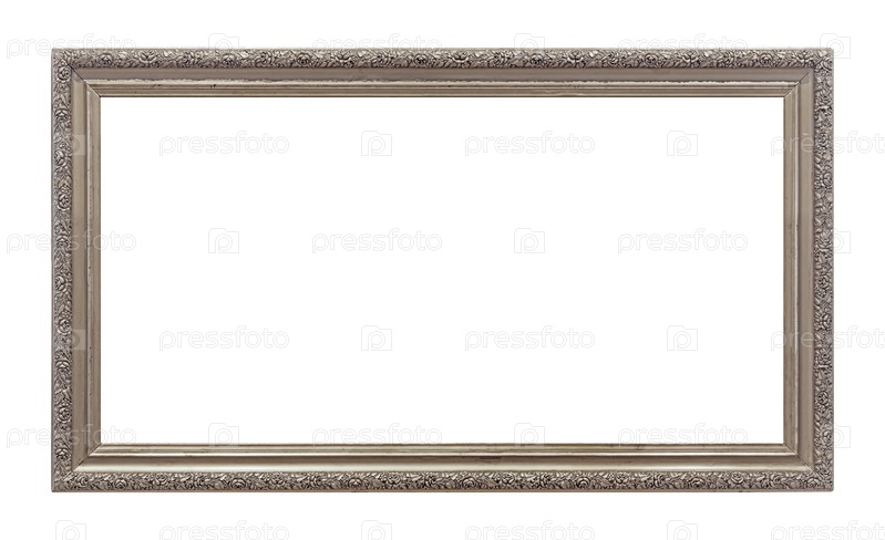 Панорамная серебряная рама для картин, зеркал или изолированной фотографии на белом фоне