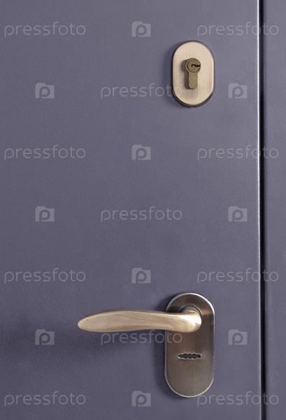 Изолированная поверхность металлической двери с замком и ручкой