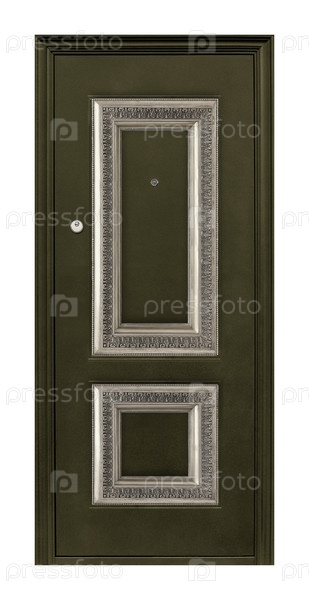 Модель входной металлической двери, изолированной на белом фоне