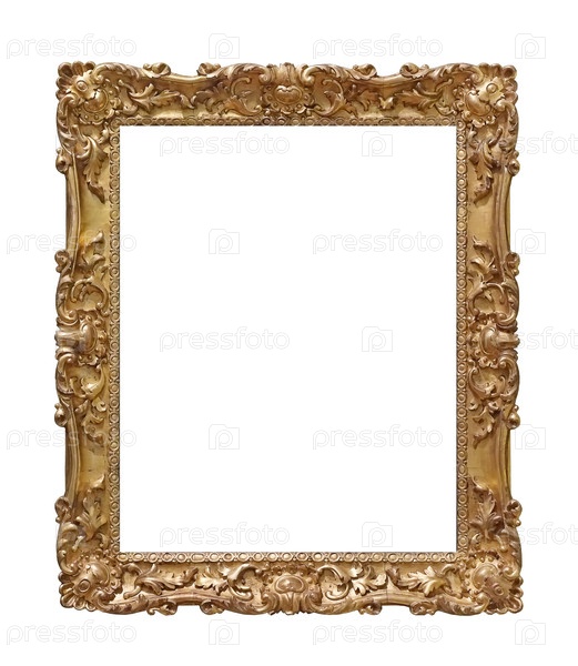 Золотая рама для картин, зеркал или фотографии изолированной на белом фоне